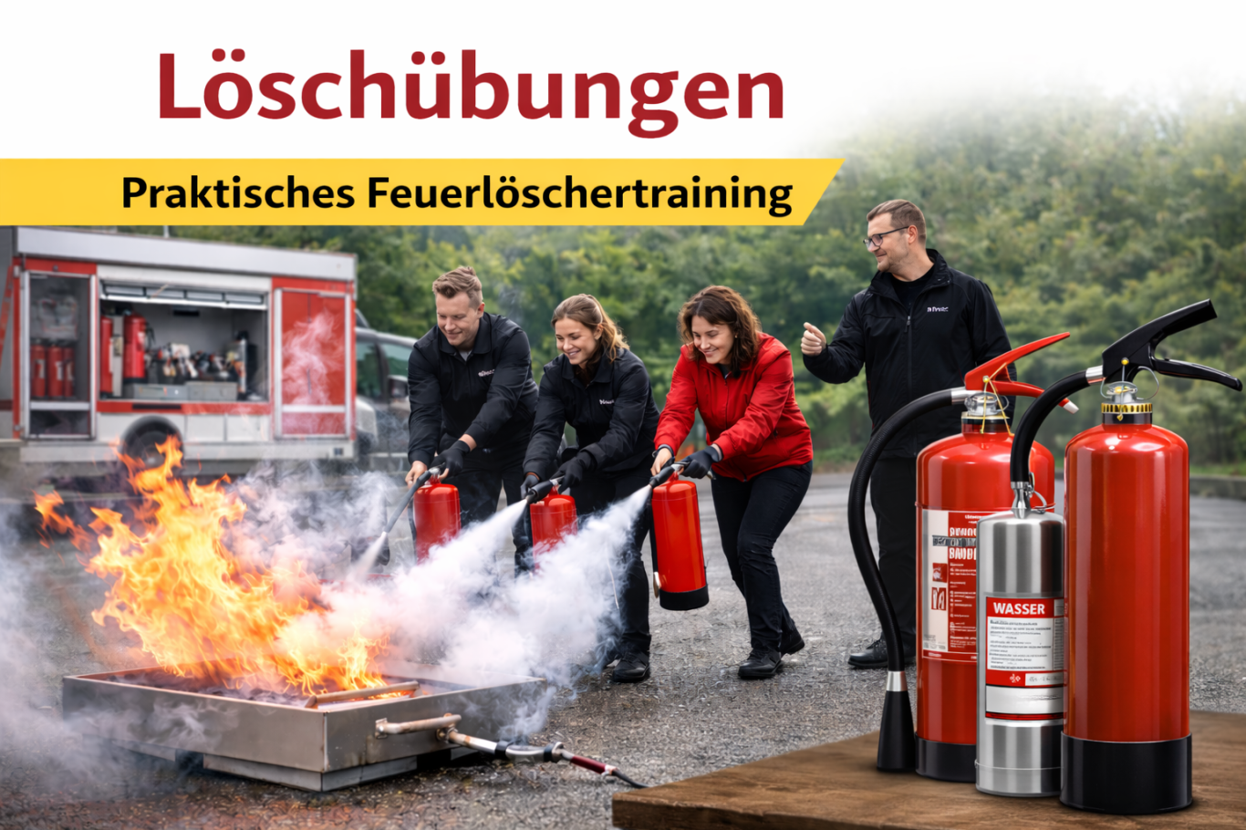 - Umweltfreundlich: Einsatz von Wasser-Übungslöschern oder CO2 – rückstandsfrei und sauber.